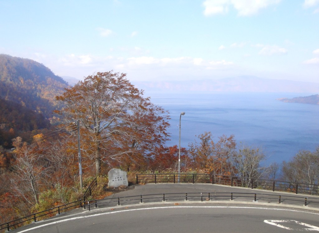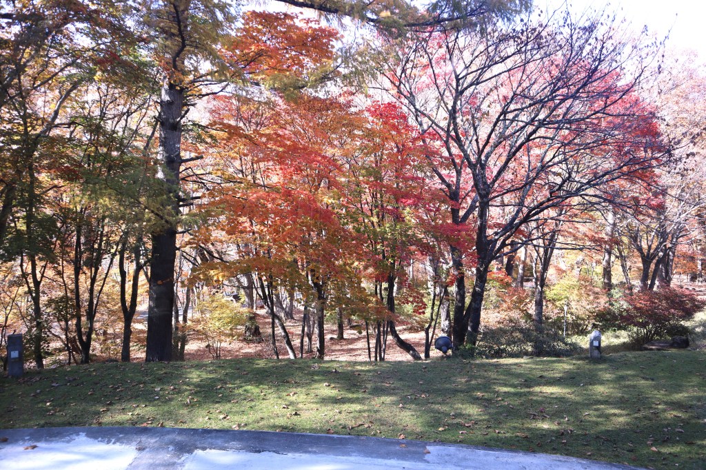 その後、湖畔西側に移動し、12時に十和田プリンスホテルに着き、昼食をとる。ホテル入口の紅葉が見事であった。