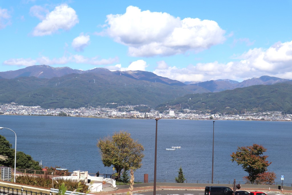 次いで、12時20分に諏訪湖SAに寄り、諏訪湖を展望する。
