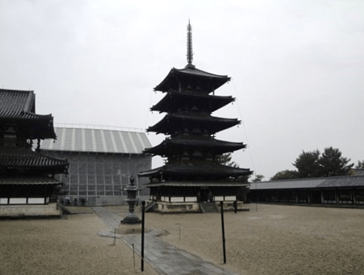 14時に出て14時20分に西南10キロ、斑鳩町にある法隆寺に着く。1時間ほど境内を散策する。