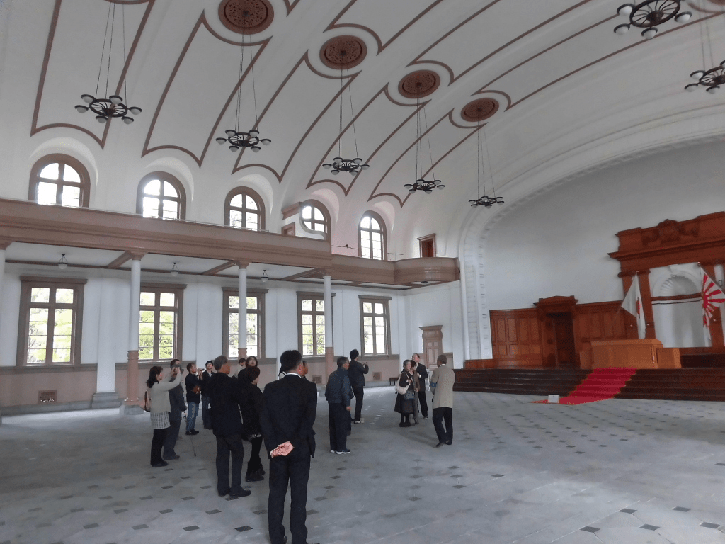 校内見学は10時からのコースで15人ほどが参加した。案内は、地元の高校の先生のOBの人だった。校庭にある松林の松が真っ直ぐ天に向かって伸びているのを、ここで育つ学生が使命に燃えて真っ直ぐに育っていくのを象徴していると語っていた。