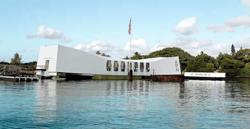 当日、快晴で風もなく真珠湾は大きな湖のように静かな海面であった。日本軍の奇襲攻撃によって沈没した戦艦アリゾナが沈没したその位置に「アリゾナ記念館」がある。1962年に建設された慰霊施設であり、アメリカ合衆国国立公園局により管理されている。記念館は真っ白な長方形の箱型で、長さは56メートル。記念館の内部は、エントランス、広間、慰霊所に分かれている。慰霊所にある大理石の壁には真珠湾攻撃で戦死した乗組員全員の名前が刻まれている。