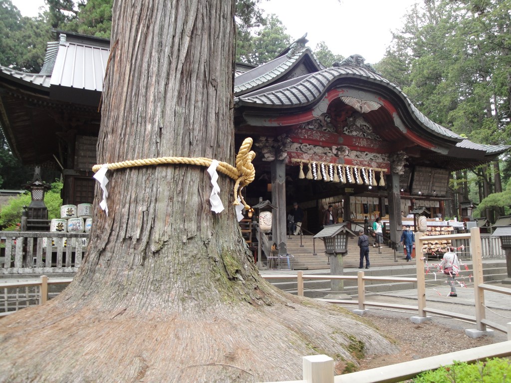 | ご神木と神社本殿 |