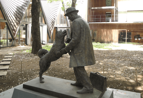 | ハチ公と上野英三郎博士像 |