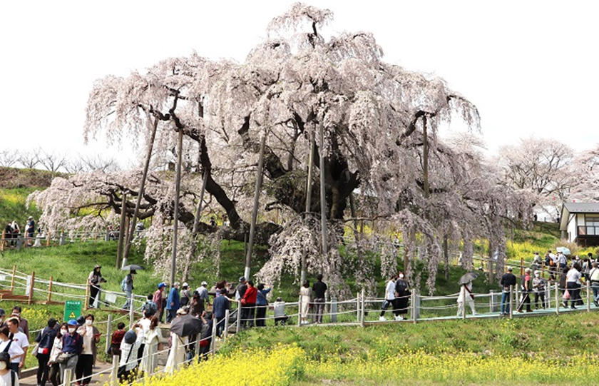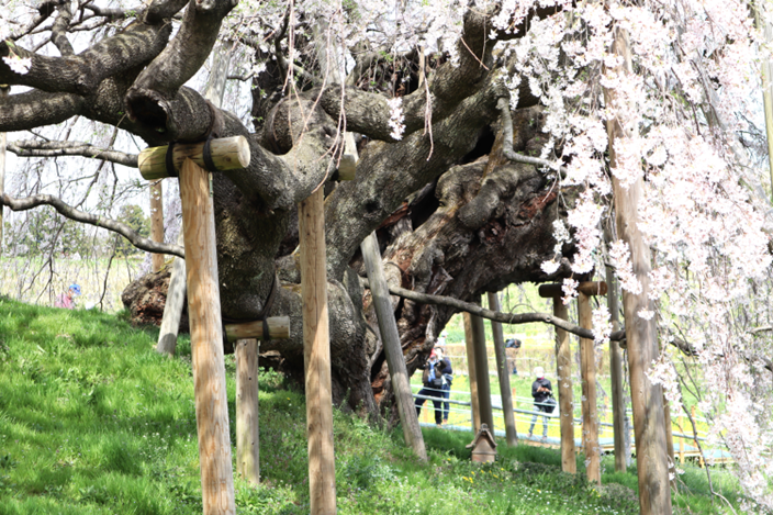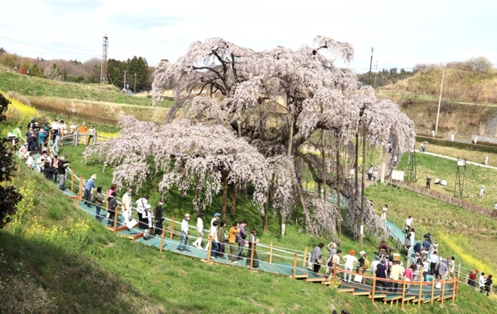 滝桜はエドヒガン系ベニシダレザクラで、日本三大桜に数えられている。大正11年10月12日に、桜の木としては初めて国の天然記念物に指定された名木である。 開花期には四方に伸びた枝から、薄紅色の小さな花を無数に咲かせ、その様はまさに流れ落ちる滝のように見えることから「滝桜」と呼ばれるようになったと言われている。