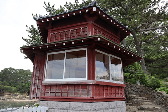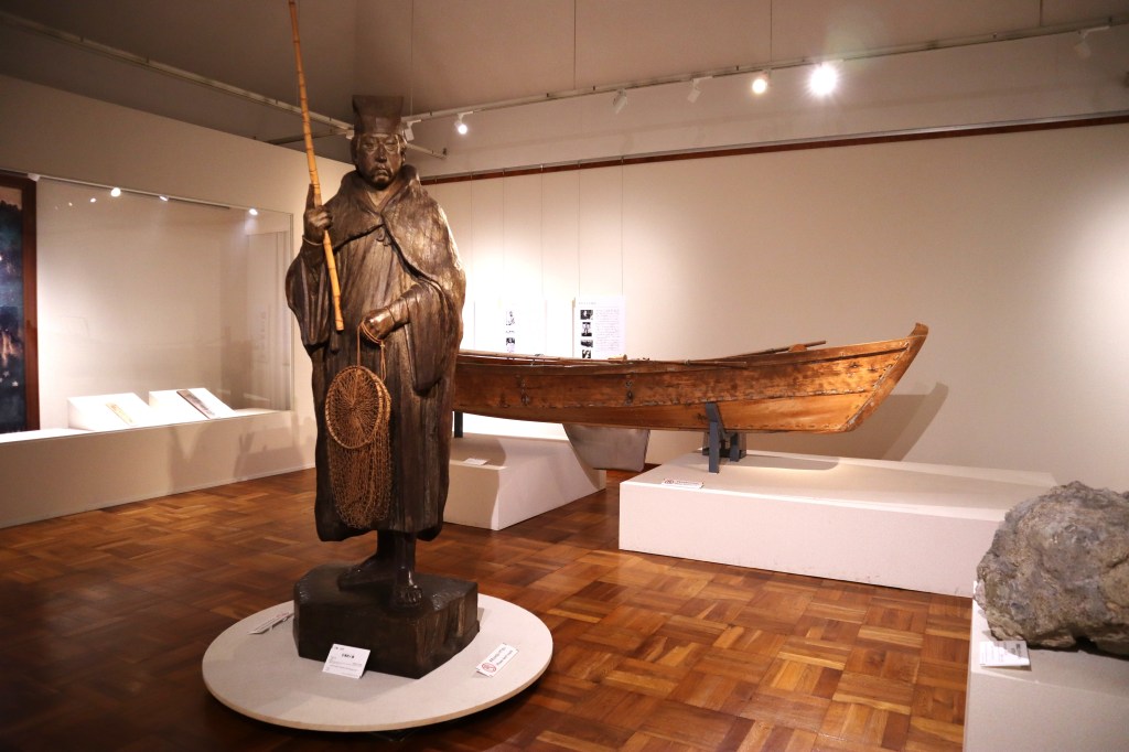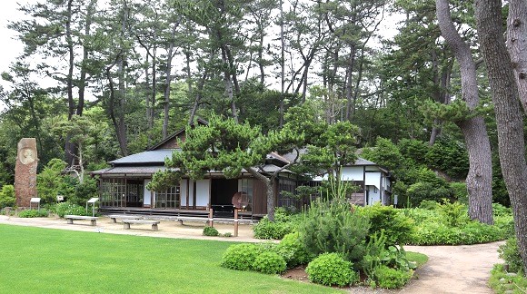 その後、陸前浜街道を南に走り、12時30分に北茨城市にある天心記念五浦美術館に着く。館内見学の後、近くにある岡倉天心亭、六角堂に向かう。