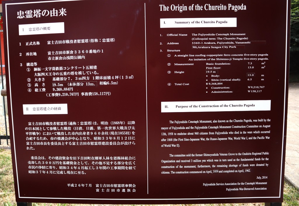 | 忠霊塔と富士山(富士吉田市新倉山浅間公園より) |