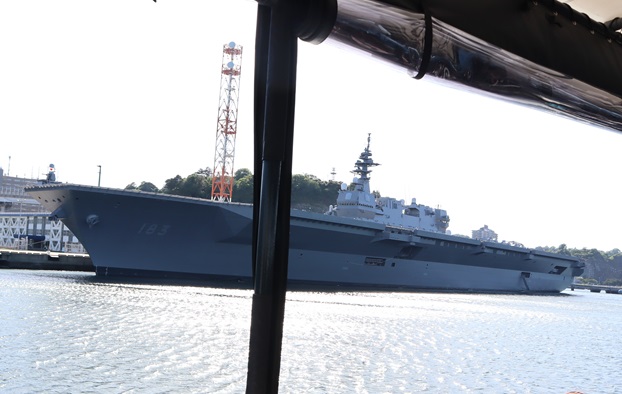 14時30分に出て、10分後に横須賀軍港の駐車場に着く。15時出航の軍港巡りクルージングを楽しむ。遊覧船に乗り45分間、米海軍横須賀基地、海自横須賀地方総監部の岸壁に停泊している護衛艦、潜水艦を目近に見て回る。運よく米空母ロナルド・レーガンが停泊しており、巨大な姿を見ることができた。