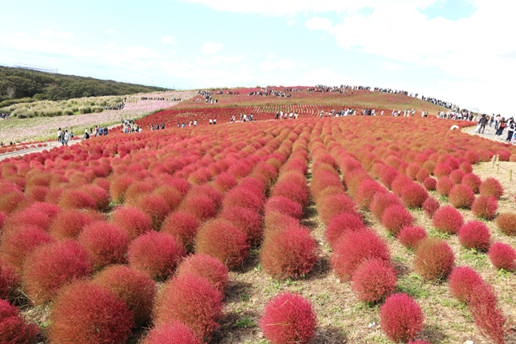 2020年10月21日、茨城県にある国営ひたち海浜公園を訪ねた。広い丘の全面に咲くコスモスとコキアは壮観であった。